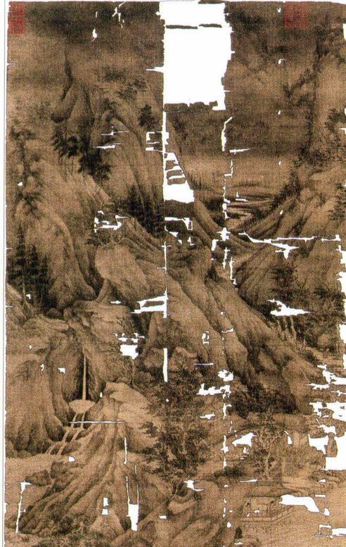 霞山的朋友们大家好,对于一张破损的古画,修复好之后,画面缺失的部分该不该接笔补全,业界一直存在不同观点的交锋,至今仍没有统一的标准来遵循。当下的普遍做法是,一些古书画修复师会倾向于在破损处进行补笔,而西方一些博物馆采取的做法是只有全色没有补笔。